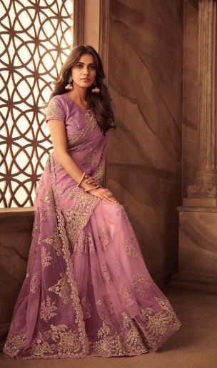 এই কালারের শাড়িটি ইন্ডিয়ান জর্জেট ফ্যাব্রিক দিয়ে তৈরী করা এবং সম্পূর্ণ শাড়ির আঁচল ও কুঁচি জুড়ে জরি কালার সুতার এমব্রয়ডারি কাজ এটিকে আরও আকর্ষণীয় করে তোলে এবং যেকোনো বিশেষ অনুষ্ঠানের পরিধানের জন্য উপযুক্ত।