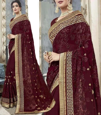 এক্সক্লুসিভ ওয়েটলেস জর্জেট এমব্রয়ডারি করা শাড়ি